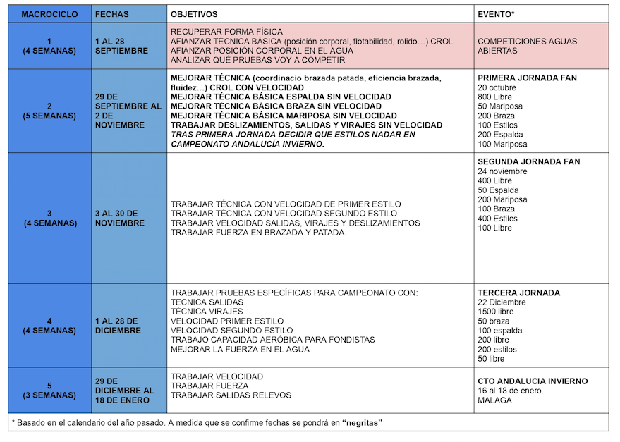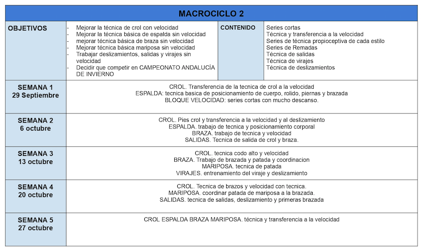 Pruebas: 800 libre, 50 mariposa, 200 braza, 100 estilos, 200 espalda, 100 mariposa
